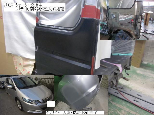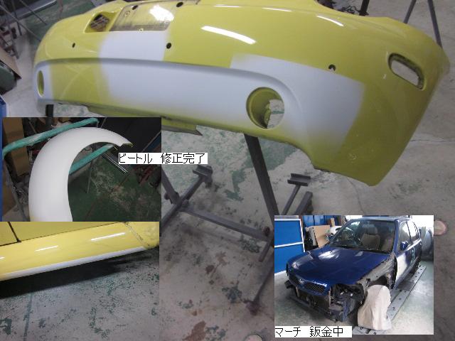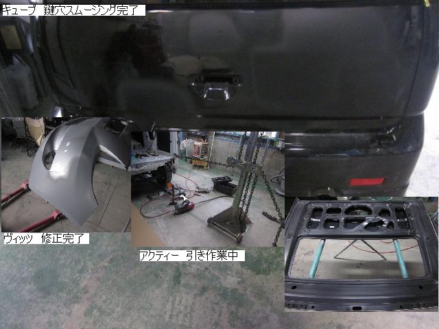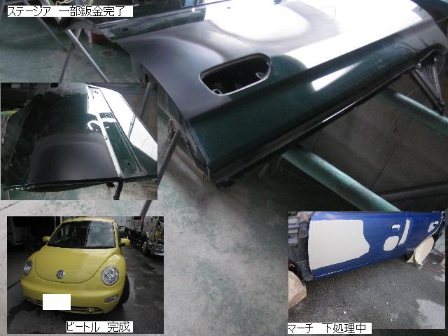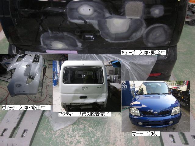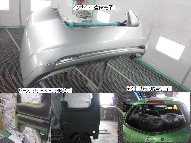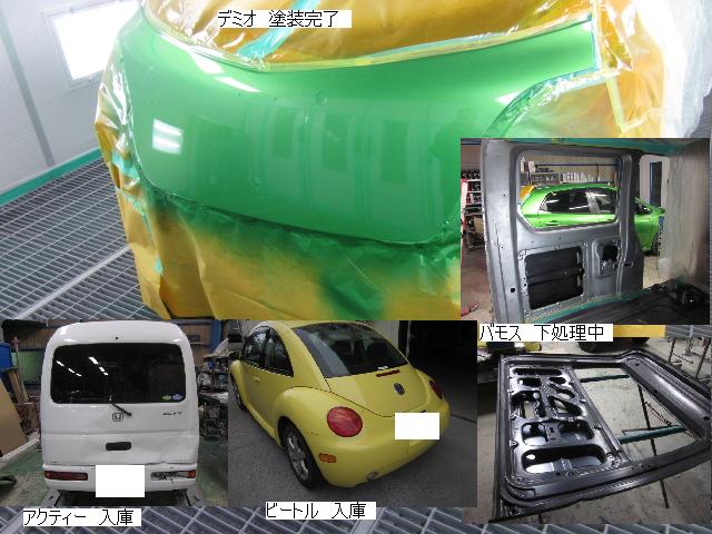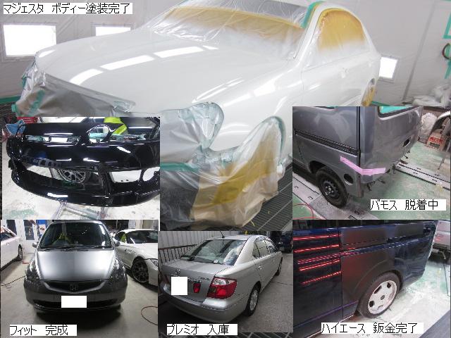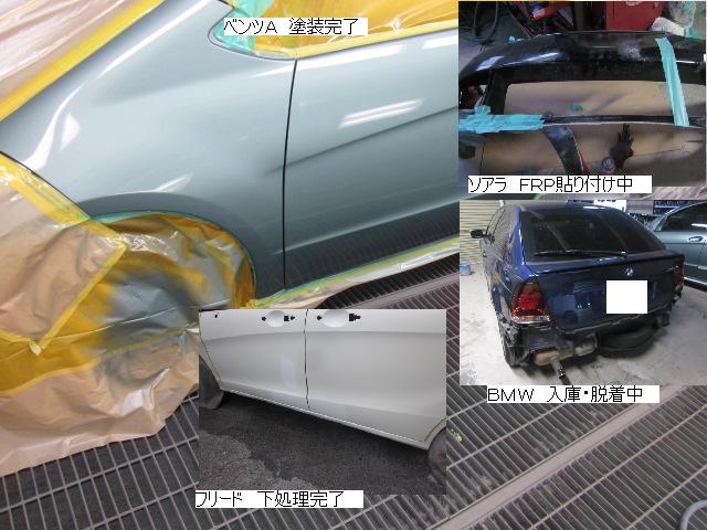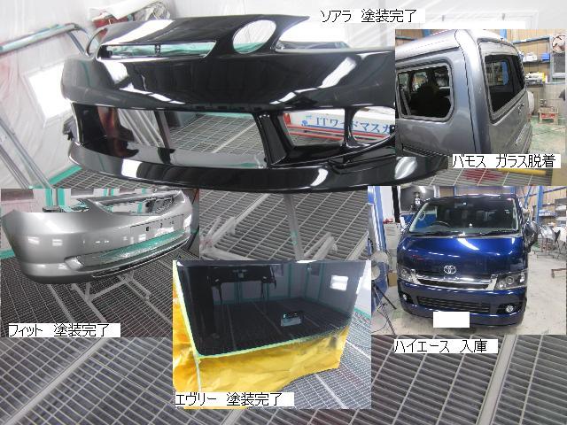 エヴリー=本日塗装作業が完了しました。IR乾燥後一晩寝かし、明日磨き・組み付け予定です。 フィット=本日塗装作業が完了しました。IR乾燥後一晩寝かし、明日磨き・組み付け予定です。 ソアラ=本日塗装作業が完了しました。IR乾燥後一晩寝かし、明日磨き・組み付け予定です。 ハイエース=入庫しました。クォ-ターの修理になります。 フリーダ=本日全損確定しましたので、保険会社引き挙げになるそうです。 マジェスタ=本日ボディーのマスキング作業を進めております。明日塗装予定です。 バモス=本日保険会社より画像伝送で作業OKでましたので、早速ガラスの脱着作業を進めております。 車のキズ(傷)・ヘコミの修理・板金(鈑金)・塗装の専門店、神奈川県相模原市の有限会社シバボディー まずはお問い合わせフォームへ! 対物保険・車両保険・各種保険修理対応。保険修理には特別サービス有り! 中古部品を使った格安修理にも対応致します。 アメブロ