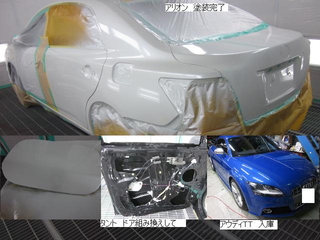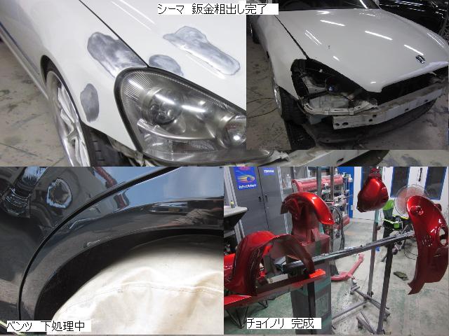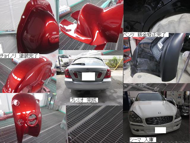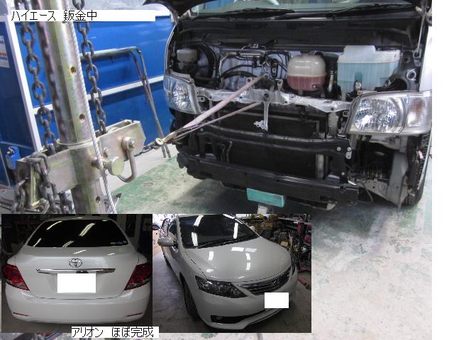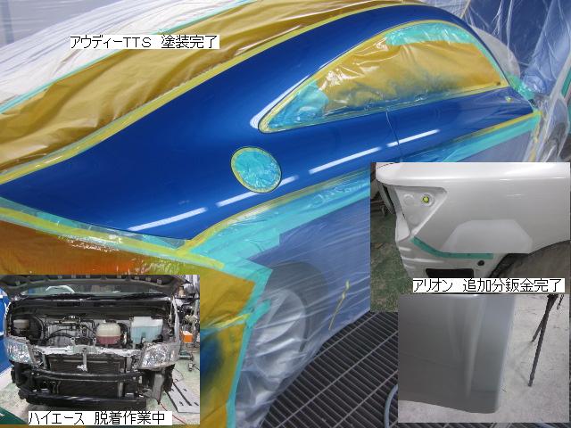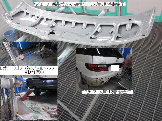 ハイエース=本日塗装作業が完了しました。IR乾燥後一晩寝かし、明日磨き・組み付けに入ります。 エスティマ=本日鈑金作業が完了しました。IR乾燥後一晩寝かし、明日塗装予定です。 レガシーワゴン=本日中古部品の修正作業が完了しました。IR乾燥後一晩寝かします。 アリオン=明日、ボディーコーティングとガラスのコーティングの予定です。当店は「町田の「カービューティープロファンタジスタ」さんにお願いしております。いつも丁寧でバッチリ仕上げてくれます。 車のキズ(傷)・ヘコミの修理・板金(鈑金)・塗装の専門店、神奈川県相模原市の有限会社シバボディー まずはお問い合わせフォームへ! 対物保険・車両保険・各種保険修理対応。保険修理には特別サービス有り! 中古部品を使った格安修理にも対応致します。 アメブロ