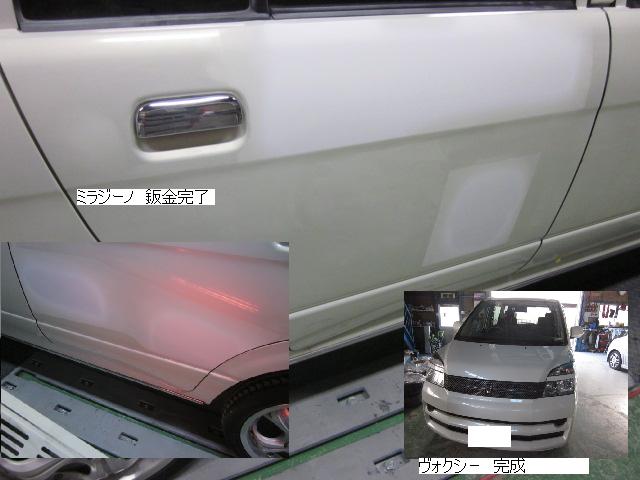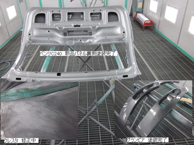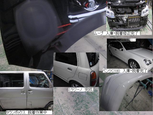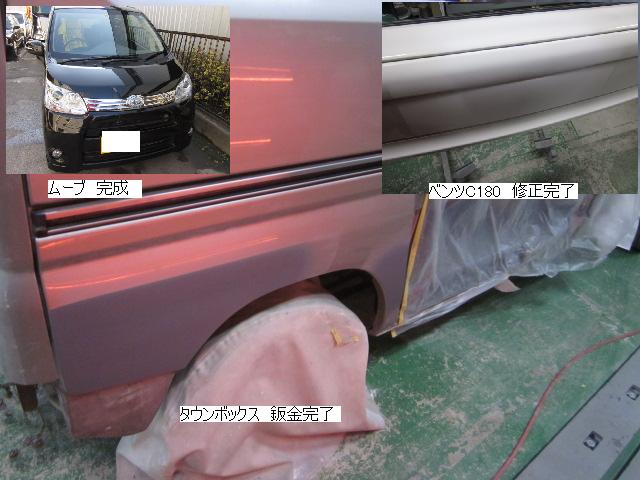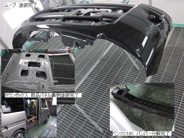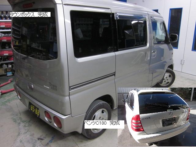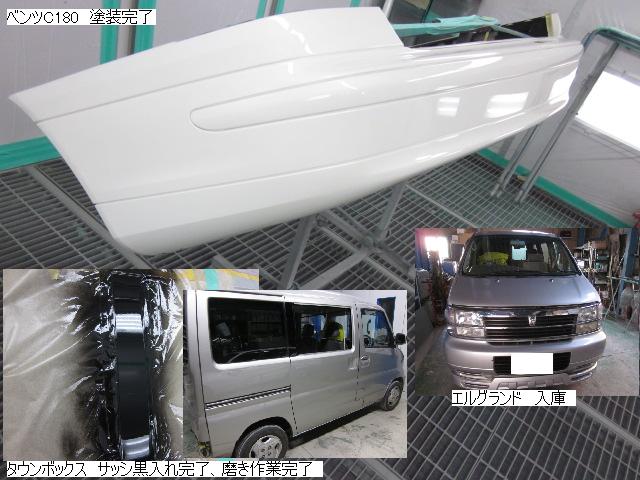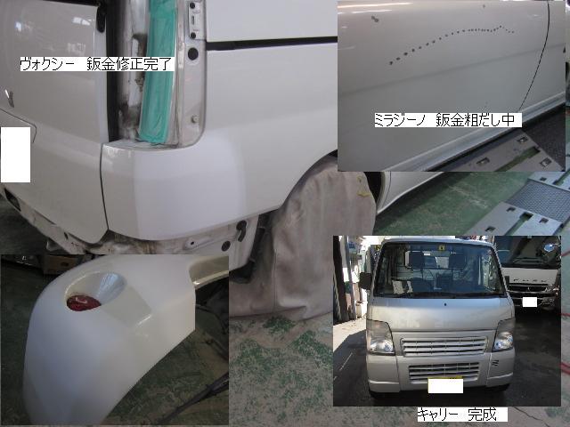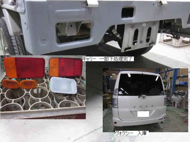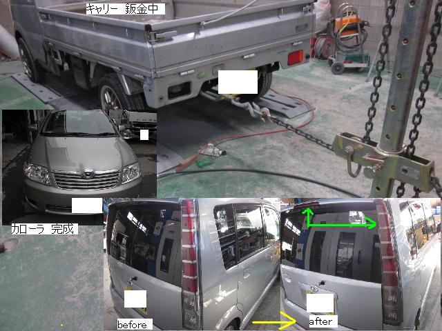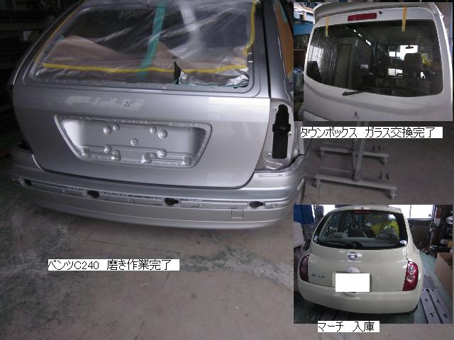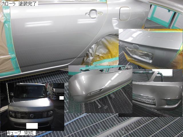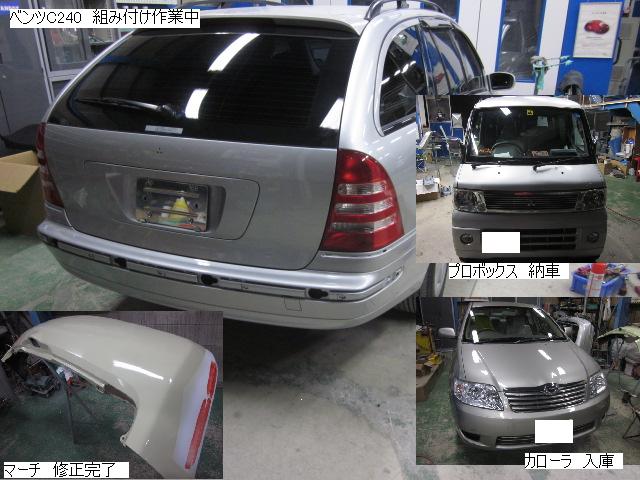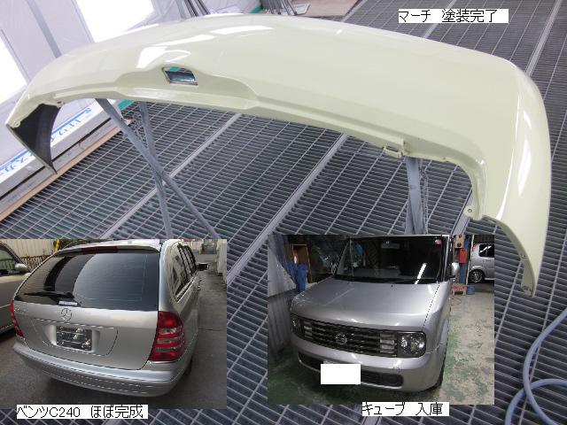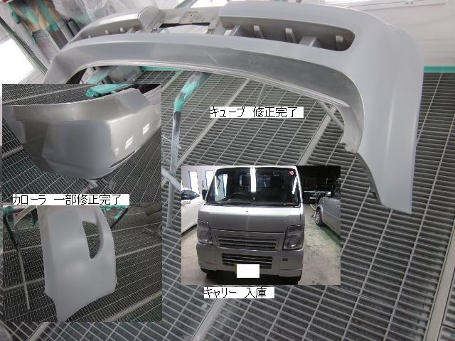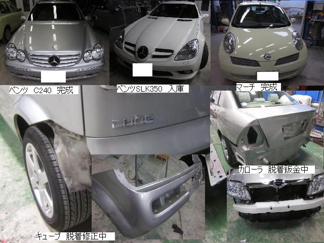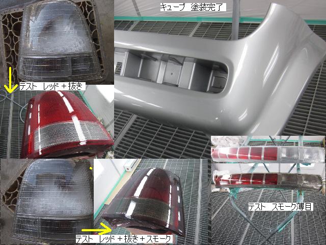 キューブ=本日塗装作業が完了しました。IR乾燥後一晩寝かし、明日磨き・組み付けに入ります。 カローラ=本日下処理を進めています。明日塗装予定です。 キャリー=明日には作業に入れる予定です。 ベンツSLK350=明日保険会社立ち合い予定です。 テスト=1.クリヤーテールをレッド+ウィンカー・バックランプ抜き。 2.クリヤーテールをレッド+ウィンカー・バックランプ抜き+スモーク 3.スモーク薄目 車のキズ(傷)・ヘコミの修理・板金(鈑金)・塗装の専門店、神奈川県相模原市の有限会社シバボディー まずはお問い合わせフォームへ! 対物保険・車両保険・各種保険修理対応。保険修理には特別サービス有り! 中古部品を使った格安修理にも対応致します。 対応地域・・・町田市、相模原市、横浜市、大和市、海老名市、綾瀬市、その他