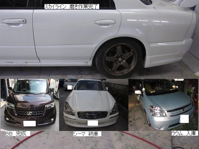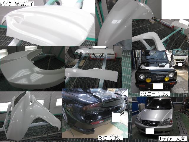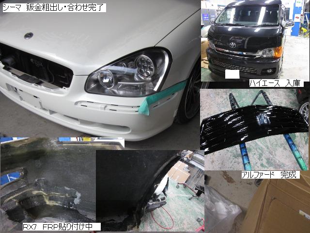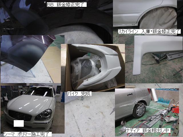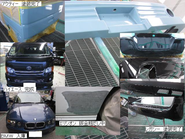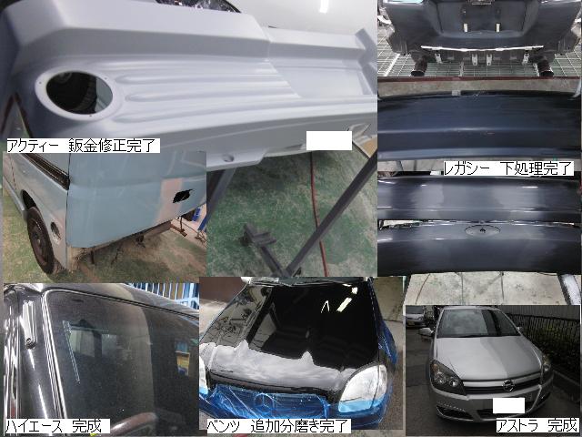 ハイエース=本日磨き・組み付け完了し、ほぼ完成しました。残すはフィルムアンテナの入荷待ちです。 プリウス=こちらも本日磨き・組み付け完了し、完成しました。 レガシー=本日鈑金修正作業が完了しました。IR乾燥後一晩寝かし、明日下処理に入ります。 アクティー=本日要約パーツが入荷しましたので、早速仮合わせ・修正作業を進めております。 ベンツSLK=本日塗装作業が完了しました。IR乾燥後一晩寝かし、明日磨き・組み付けに入ります。 アストラ=こちらも本日塗装作業が完了しました。IR乾燥後一晩寝かし、明日磨き・組み付けに入ります。 エリシオン=入庫しました。スライドドアの修理になります。明日から作業に入ります。 車のキズ(傷)・ヘコミの修理・板金(鈑金)・塗装の専門店、神奈川県相模原市の有限会社シバボディー まずはお問い合わせフォームへ! 対物保険・車両保険・各種保険修理対応。保険修理には特別サービス有り! 中古部品を使った格安修理にも対応致します。 対応地域・・・町田市、相模原市、横浜市、大和市、海老名市、綾瀬市、その他