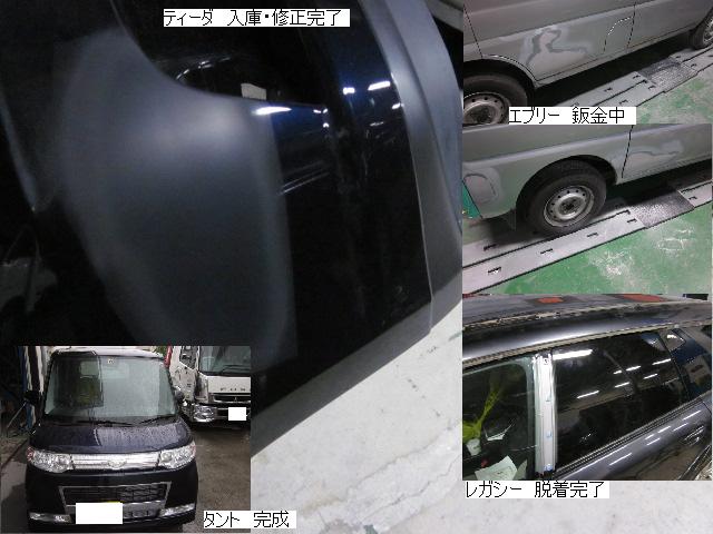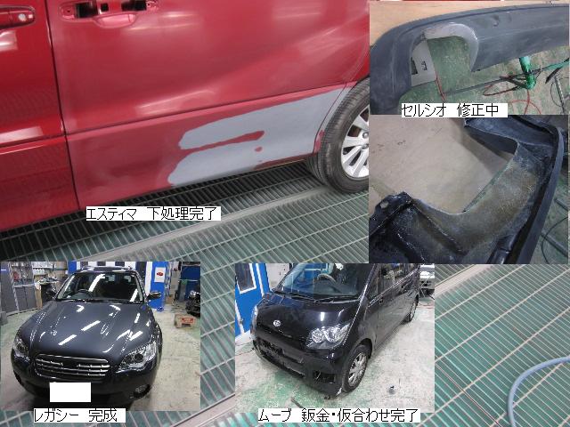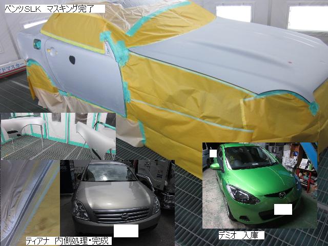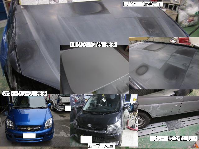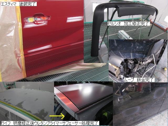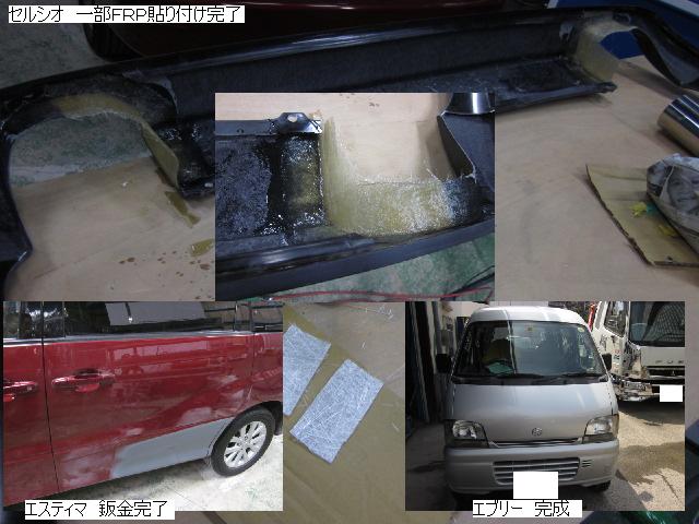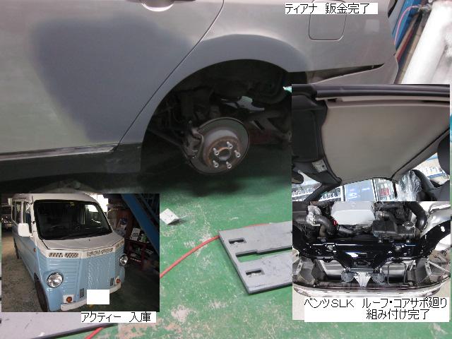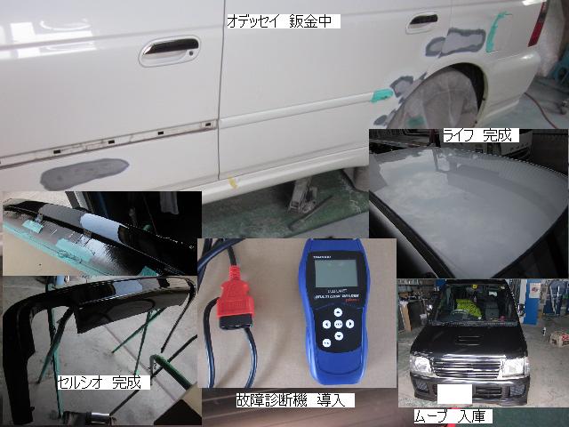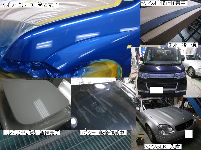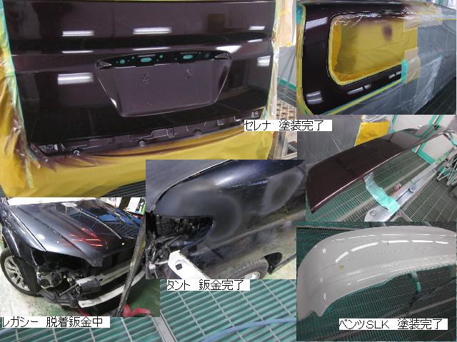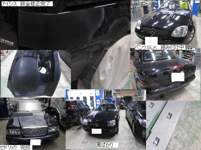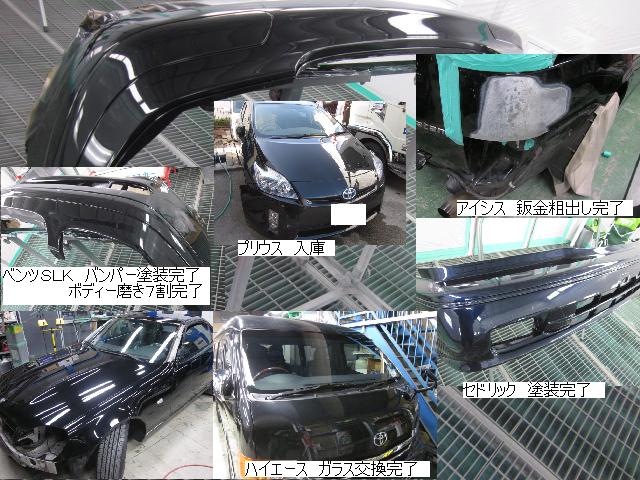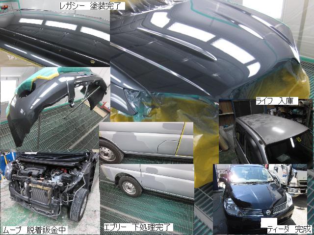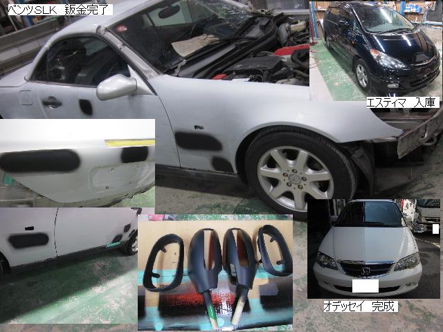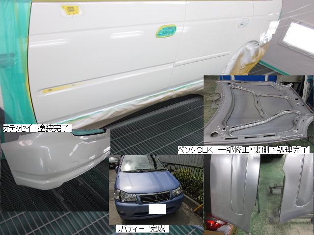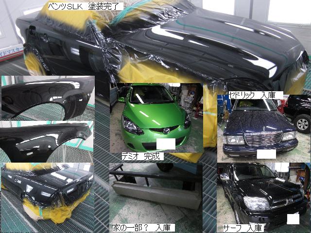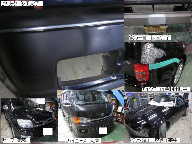 ベンツSLK=磨き作業中です。明日も引き続きと残りのバンパーの塗装作業に入ります。 セドリック=本日修正作業が完了しました。IR乾燥後一晩寝かし、明日塗装作業に入ります。 アクティー=本日保険会社による立ち合いが完了しました。早速部品オーダーしました。 サーフ=本日部品の取替が完了し、完成しました。 アイシス=鈑金粗出し作業中です。明日も引き続きです。 ハイエース=入庫しました。車両保険対応ですでに保険会社から作業OK出ていますので、早速ガラスを手配しました。 家の一部=本日鈑金作業が完了しました。IR乾燥後一晩寝かします。ここまでで納品です。 車のキズ(傷)・ヘコミの修理・板金(鈑金)・塗装の専門店、神奈川県相模原市の有限会社シバボディー まずはお問い合わせフォームへ! 対物保険・車両保険・各種保険修理対応。保険修理には特別サービス有り! 中古部品を使った格安修理にも対応致します。 対応地域・・・町田市、相模原市、横浜市、大和市、海老名市、綾瀬市、その他