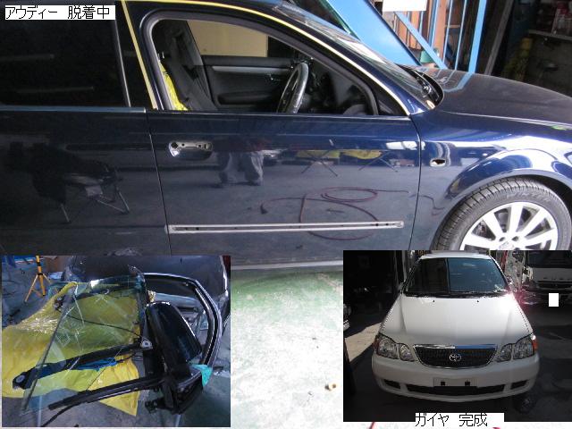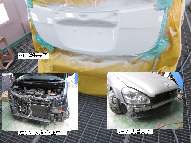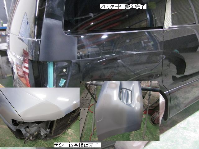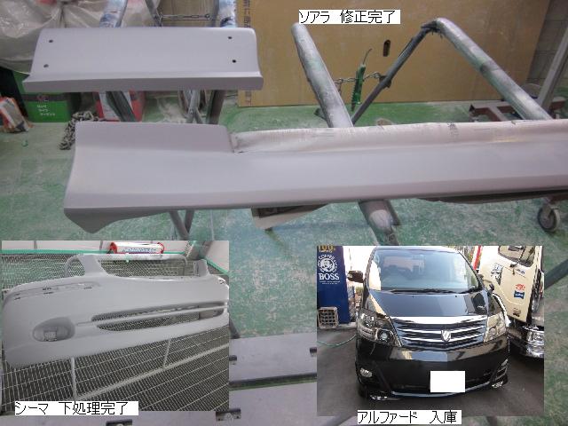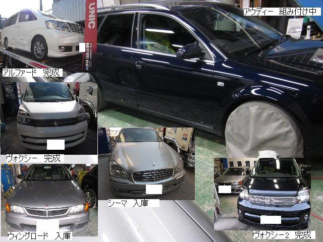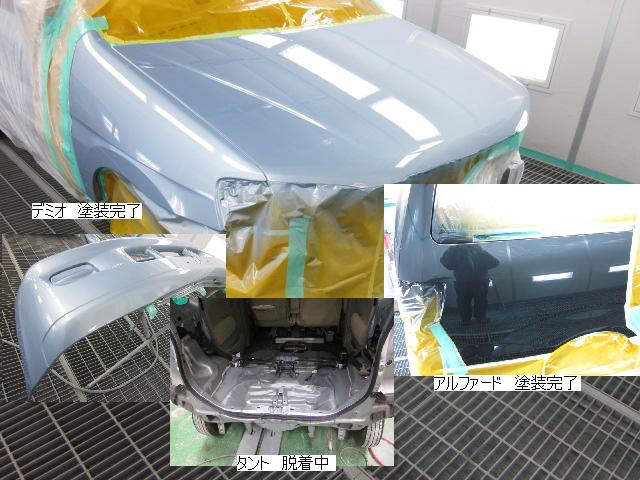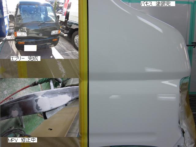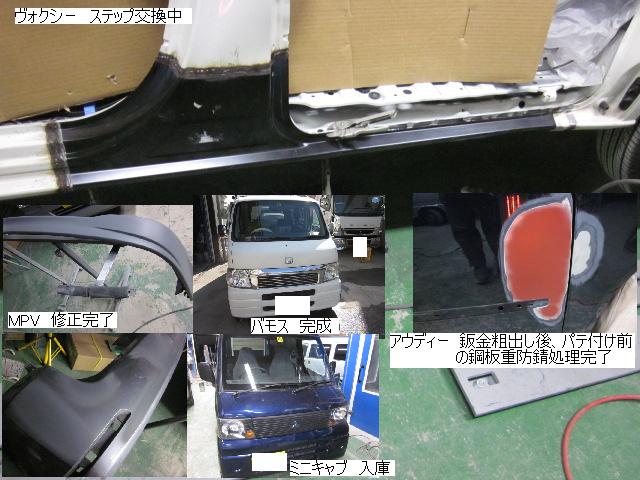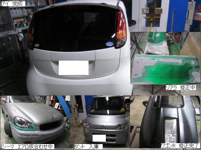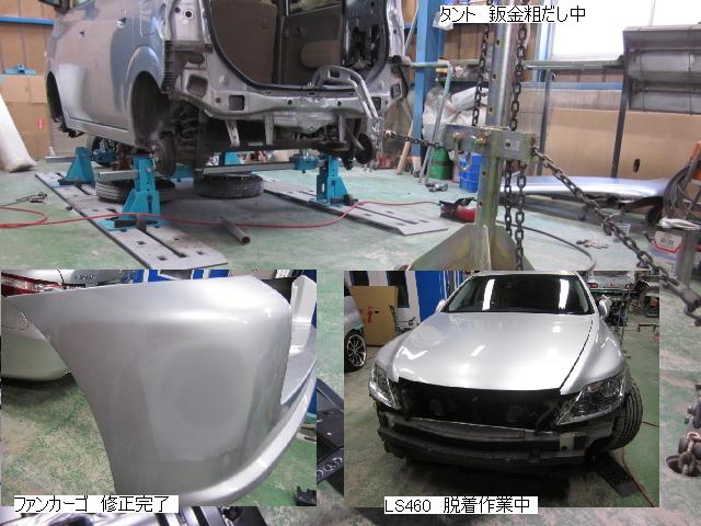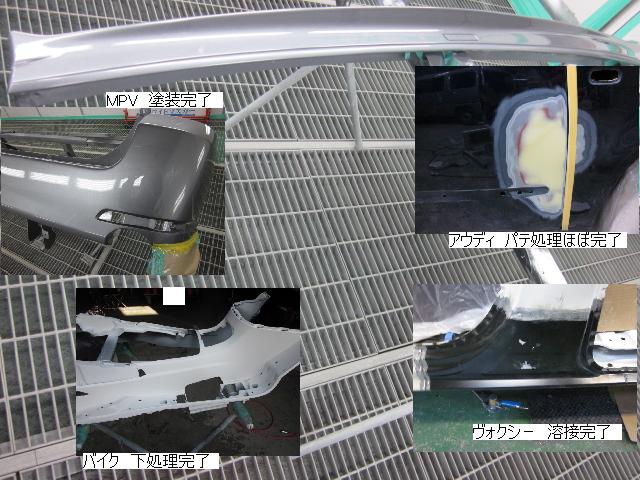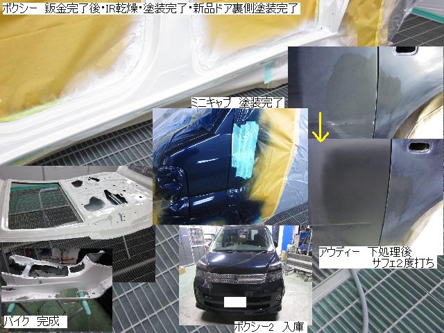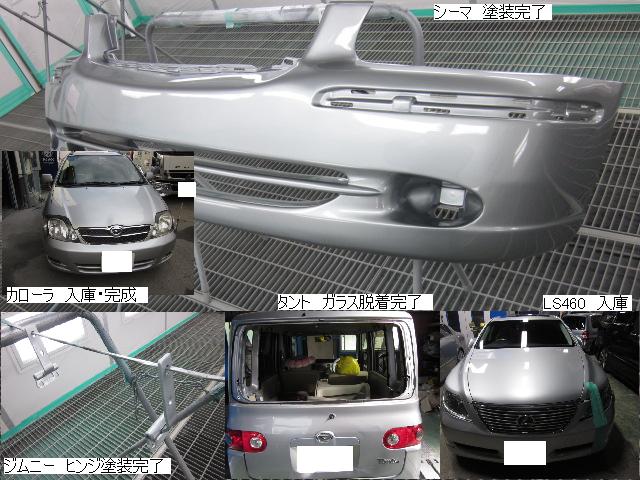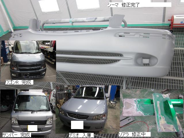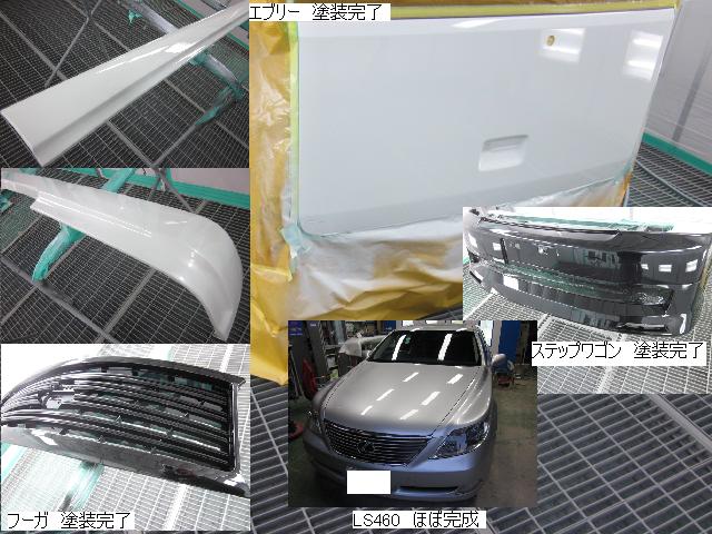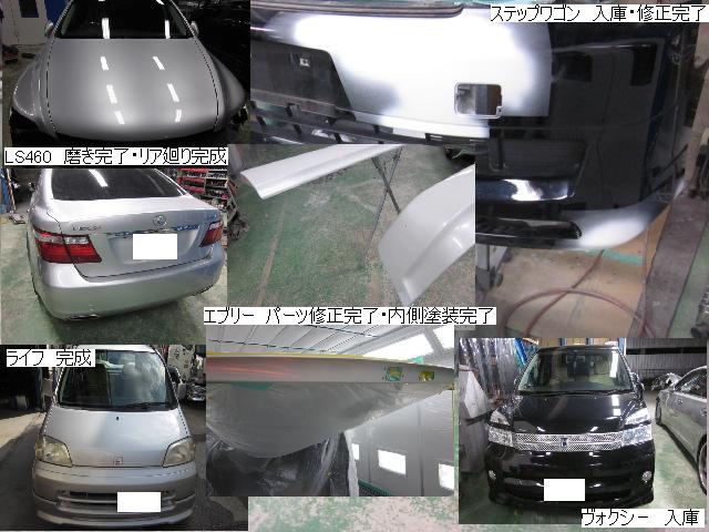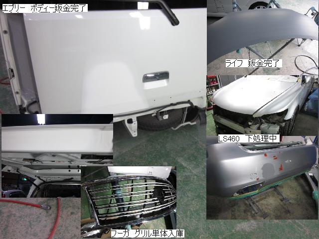 LS460=本日磨き作業とリア廻りが完成しました。明日前廻りの組み付けに入ります。 ライフ=本日磨き・組み付け完了し、完成しました。 エブリー=本日パーツ類の修正作業と内側の塗装作業が完了しました。IR乾燥後一晩寝かし、明日塗装作業に入ります。 タント=追加の部品が入荷しましたので、作業再会します。 アクティー=本日保険会社より作業OK出ましたので、段取り付き次第作業に入ります。 ヴォクシ-=入庫しました。スライドドアの修理になります。 ステップワゴン=入庫しました。すでに修正完了し、IR乾燥後一晩寝かし、明日塗装予定です。 車のキズ(傷)・ヘコミの修理・板金(鈑金)・塗装の専門店、神奈川県相模原市の有限会社シバボディー まずはお問い合わせフォームへ! 対物保険・車両保険・各種保険修理対応。保険修理には特別サービス有り! 中古部品を使った格安修理にも対応致します。 対応地域・・・町田市、相模原市、横浜市、大和市、海老名市、綾瀬市、その他